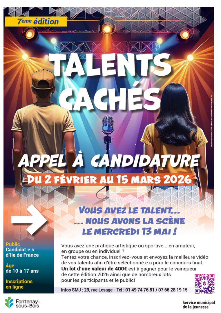 Le Service Municipal de la Jeunesse de Fontenay-sous-Bois lance sa 7ème édition du concours Talents Cachés. L’objectif est de mettre en lumière les jeunes talents.